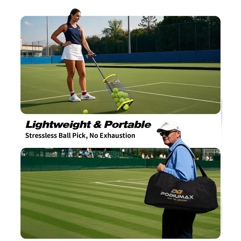 PodiuMax Tennis Ball Picker Upper, 30 Pickleball Picker Upper, 42 Tennis Ball Collector, Portable Pickleball Retriever for Easy Collection & Storage