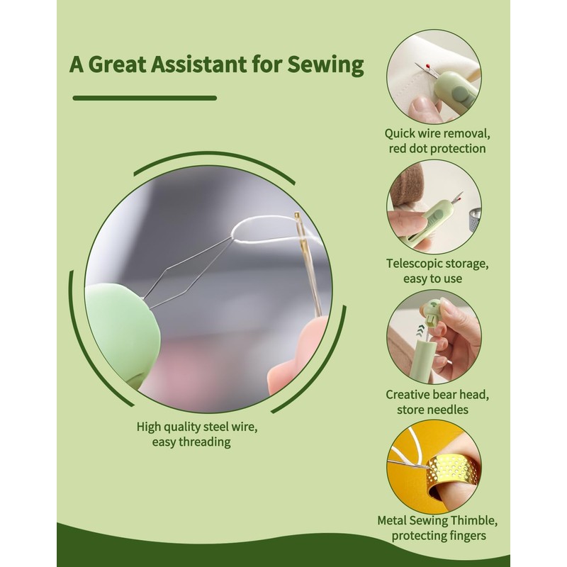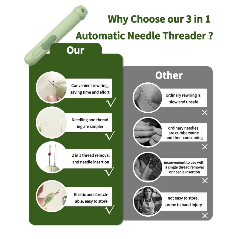 - 3-in-1 Dual Functionality: This versatile needle threader combines a needle threader and seam ripper for quick threading and precise seam ripping, making it a good helper for hand sewing, knitting, cross stitching and embroidery enthusiasts. The top is equipped with a storage function for easy daily organization and management.