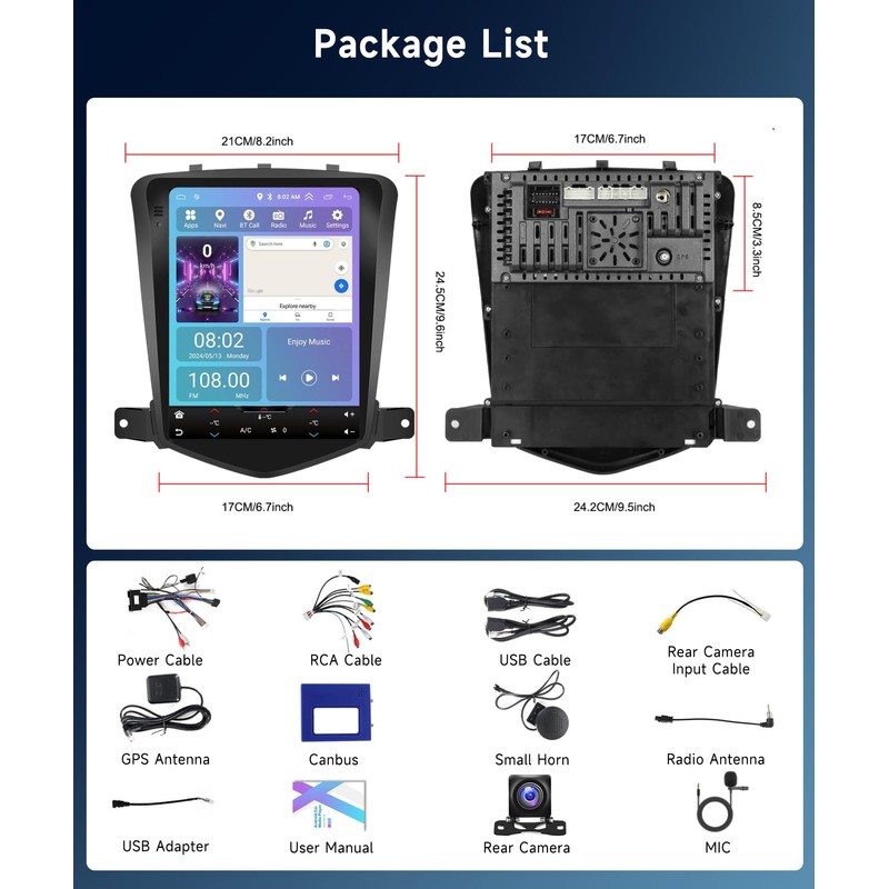- 1.【For Chevy Cruze J300 Car Radio】 The Android Car stereo fits for Chevy Cruze 2009 2010 2011 2012 2013 2014 2015 2016,package contains Chevy Cruze frame accessories and installation tools,plug and play.Before purshasing,please check your car models/years/shape of center console.If you have any question,please tell us via Amazon