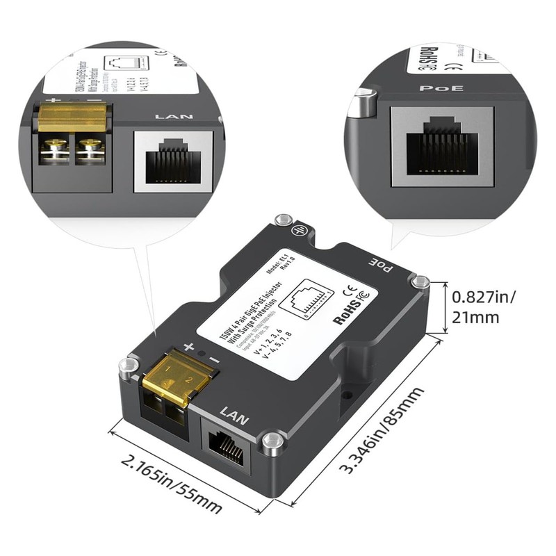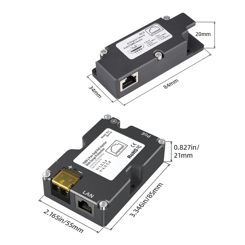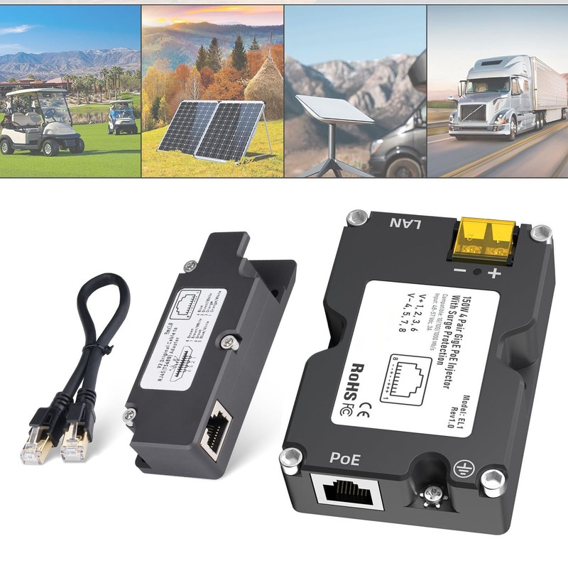 1、[150W GigE PoE Injector] Efficiently provides 150W power, supports for Dish V2 (12V 15A input, 12V to 48V 3A 144W) and for Gen 3 (12V 15A input, 12V to 56V 3A 168W), achieving reliable performance. 2、[High Speed Connection] for Dishy V2 to RJ45 Adapter and PoE injector support 10 100 1000Mbps network speeds and four pairs of Gigabit Ethernet, ensures faster data transfer speeds, quicker and more stable network connection. 3、[Versatile Power Input] DC48 to 57V input range, accepts both standard cable and regular network cable, can easily connect to the computer network port, the other end receives 48V DC to achieve efficient power supply. 4、[Efficient Power Management] Input output rated at maximum 3A to ensure optimal power distribution to for Dishy V2 and for Gen 3 without compromising safety or performance. 5、[Surge and ESD Protection] PoE offers superior protection with ±8KV surge (differential) and ±8KV (contact), ±15KV (air) ESD, A class protection, effectively ensuring safe operation of the equipment under various environmental conditions and extending device lifespan.
