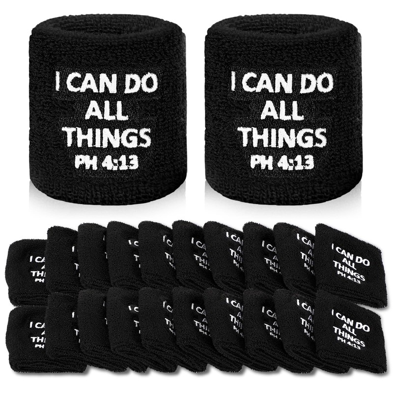 Poen 12 Pairs Inspirational Wrist Bands Men Women Christian Sweatbands I Can Do All Things Black Wristbands Sweatbands for Tennis Football Basketball Running Gym Working out