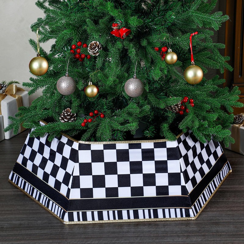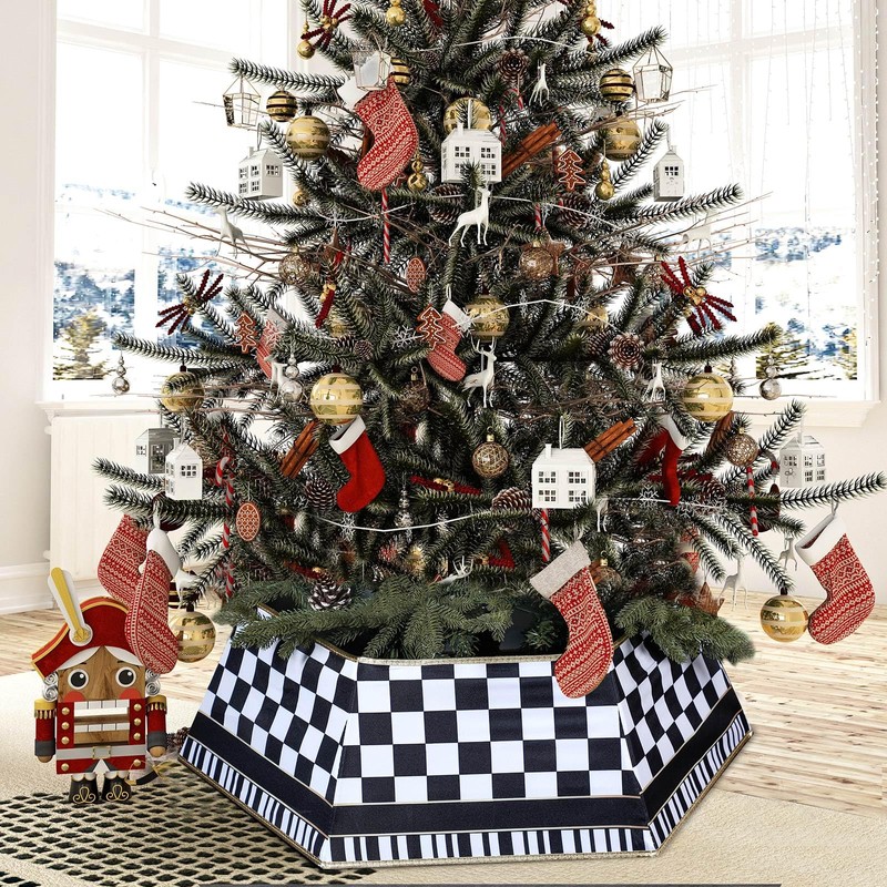 - Nice Workmanship Design: this christmas tree skirt is supported by quality fabric with comfortable texture, flaunting a classic black and white checkerboard design and a smooth, shiny surface similiar to ceramic texture, enhance the happy atmosphere