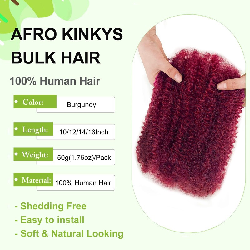 - Afro Kinkys Bulk Human Hair:If You Want to Dye the Hair,We Recommend Doing So with the Help of a Professional Stylist for Bleaching and Coloring.