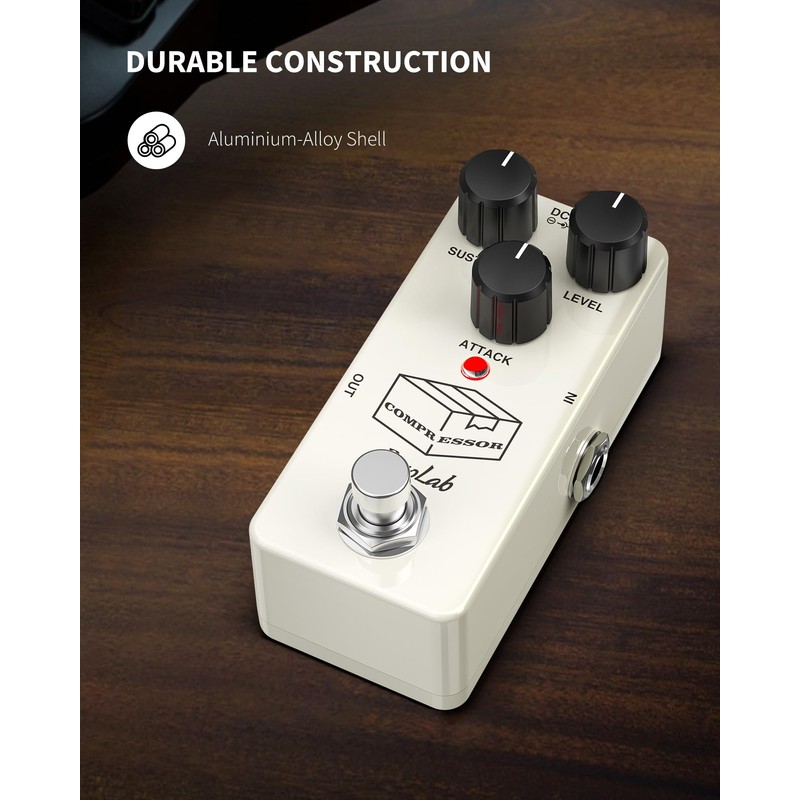 - [Noise Reduction] Developed with the code to reduce noise swells common with Compressor circuits, you get the quietest effect possible with this Compressor pedal.