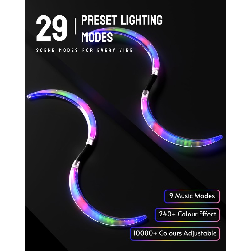 • COLOR LIGHT MODES- LED S-staff adjust color LED strips with ,+ colors to change color, brightness, and color temperature. In sound activated mode, play music or turn on a sound playback device, you can let the light change the color and brightness with therhythm of music, the music rhythm beautiful.