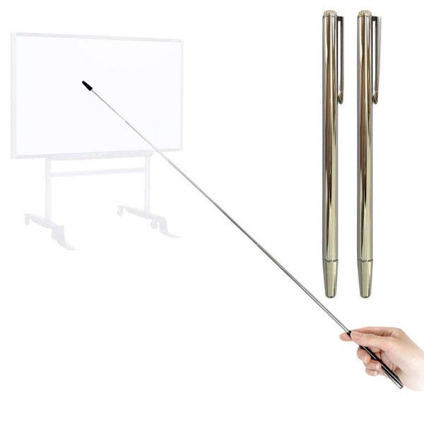Pointer - Teachers Pointer - Teaching Pointer - Hand Pointer Extended Length, Presenter Whiteboard Pointer, Black Matte with Chrome Trim (Silver-2pcs)