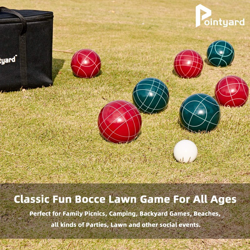 - 【PERFECT GIFT & 100% SATISFACTION 】Pointyard Classic Bocce Ball Set is a perfect gift for Teenagers, Friends, Family, Colleague. Bocce Game has been gaining popularity in the United States, which is one of the most widely played games in the world as well as one of the oldest lawn or yard games. Your satisfaction is prior importance to us, we offer 24-hour customer service and 30-day return. Any questions, please feel free to contact us!