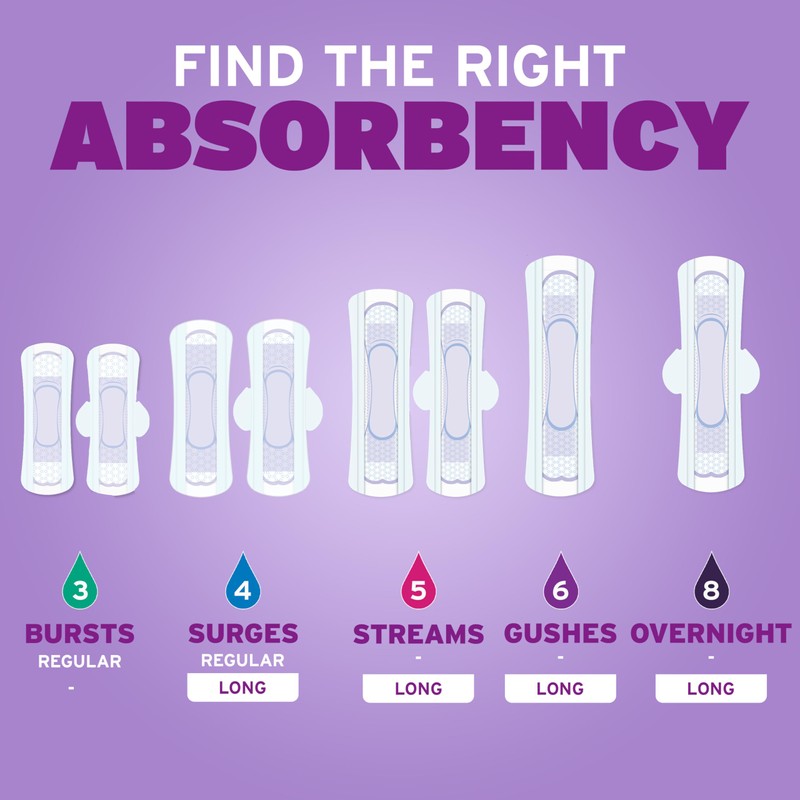 • DESIGNED TO KEEP YOU DRY: Our ultra thin incontinence pads have a Dry-Touch layer that rapidly locks away more* wetness for a clean feel (*vs. leading period pads, 24 ml of fluid)