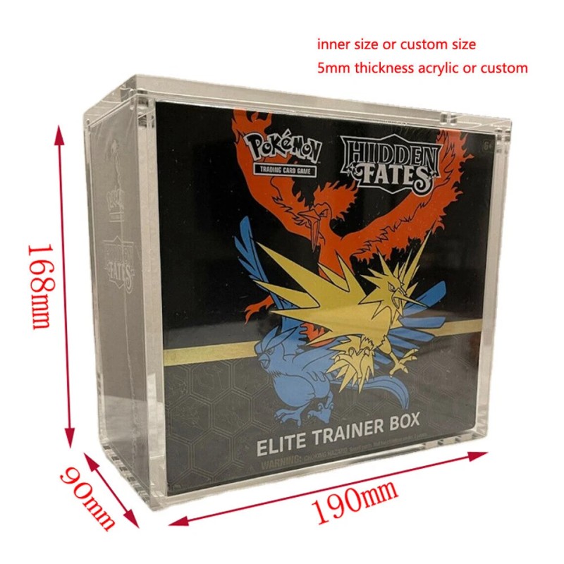 Product details POKEMON HARD CASE ETB BOX ACRYLIC DISPLAY CASE MAGNETIC TOP LID (FITS HIDDEN FATES AND MOSTLY ALL MODERN ETBS). Condition is "NEW". Elite Trainer Box IS NOT INCLUDED!!! (Display Case only) These particular cases are a very nice fit. Not too tight where the ETB can’t come back out by any means and not too roomy where the ETB is moving around within the acrylic. This is truly a perfect fit to properly protect your collection piece. Fits all Pokemon Elite Trainer Boxes - Ideal for high end collectors/investors - No assembly required - Magnetic locking mechanism, no screws required - Suitable for high end ETB protection - Protects ETBs against dust, scratches and potential dents when stored correctly Ship next Business day! Free Shipping! Each Display Case come in own brown box.