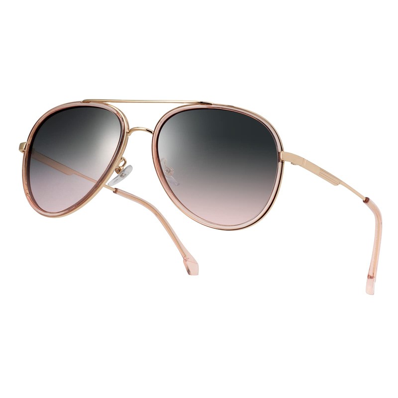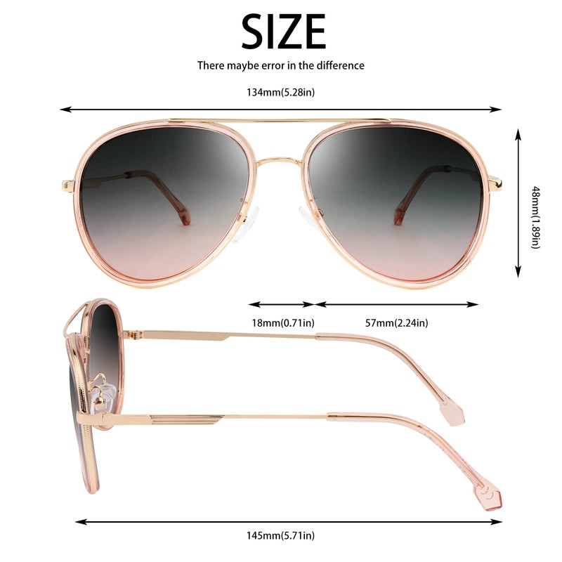 POLARKING Oversized Aviator Polarized Sunglasses for Women Men,Oval Double Bridge Metal Frame Sun Glasses UV400 Protection Pink
