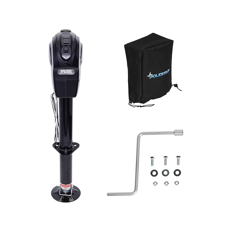 POLESTAR Electric Trailer Jack, 5000lbs Electric Power A-Frame Tongue Jack with Waterproof Protective Cover & LED Light for Travel Trailer Camper, RV, 12V DC with Hard Wiring, 9"-27" Lift