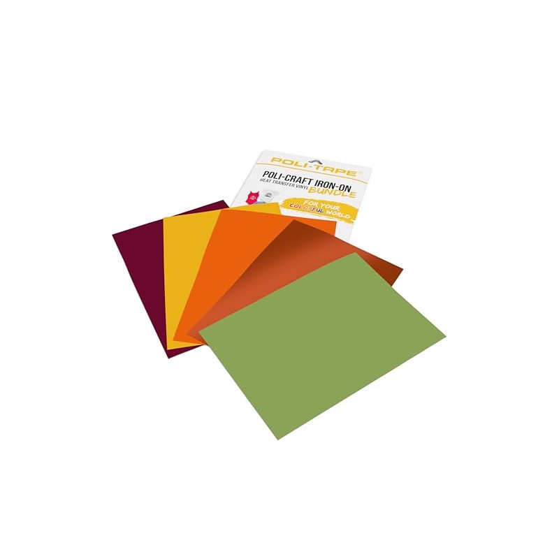 Poli-Kraft Iron-On Bundle Fall/Autumn, 5 x Poli-flex® Turbo®, Turbo-Fast Transfer Film for Textiles, Autumn (Bordeaux, Yellow, Orange, Bronze, Olive), 5 x A4 (21 cm x 29.7 cm)