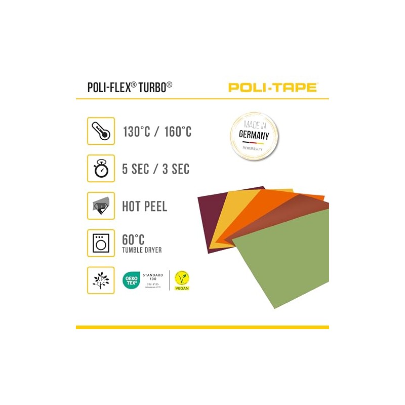- The turbo fast transfer film – Poli-flex Turbo is a high-quality flex film "Made in Germany" for labelling textiles that can be transferred quickly and gently.