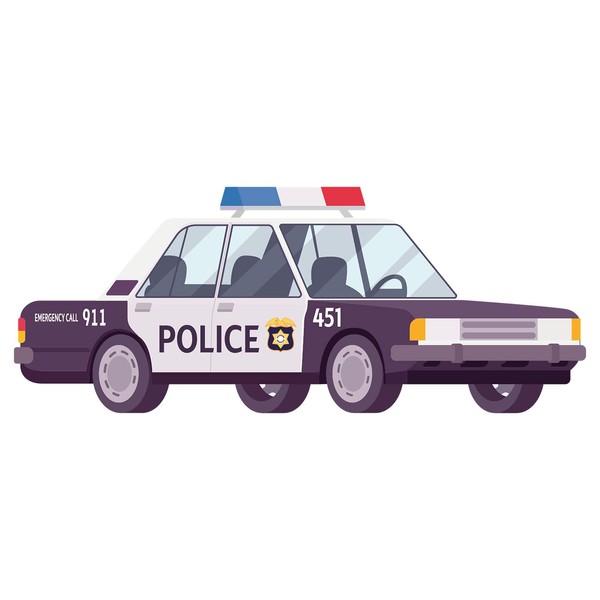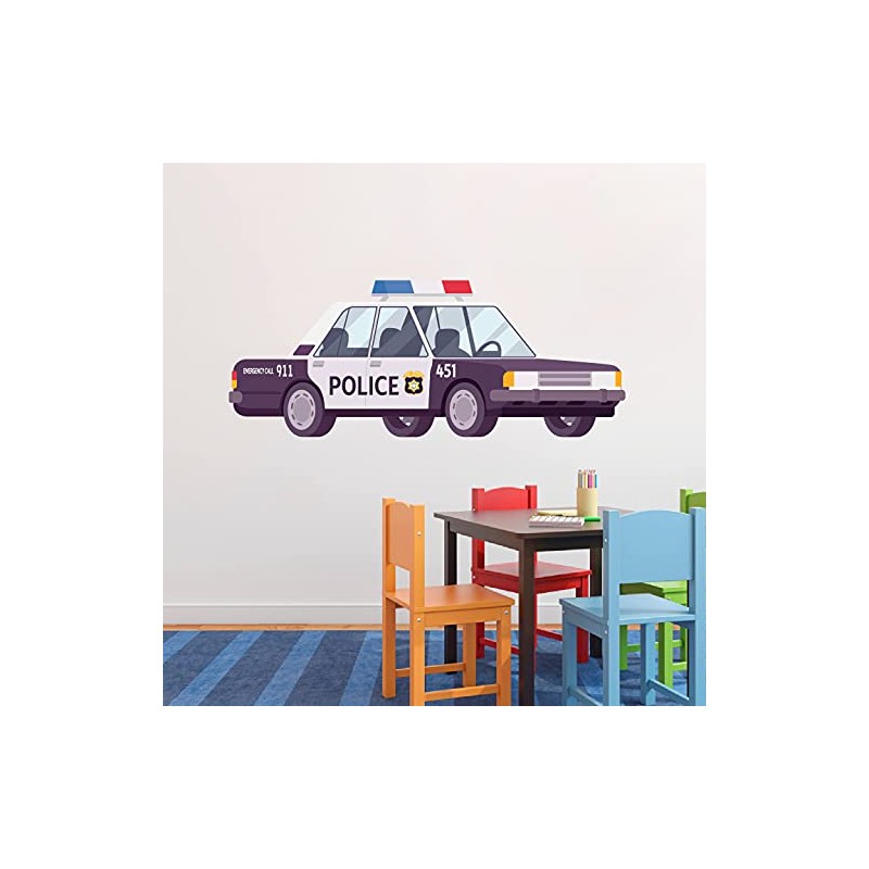 Police Car Artwork Vinyl Wall Decal - 911 Emergency Vehicle Art Drawing Wall Decoration 36" x 22"