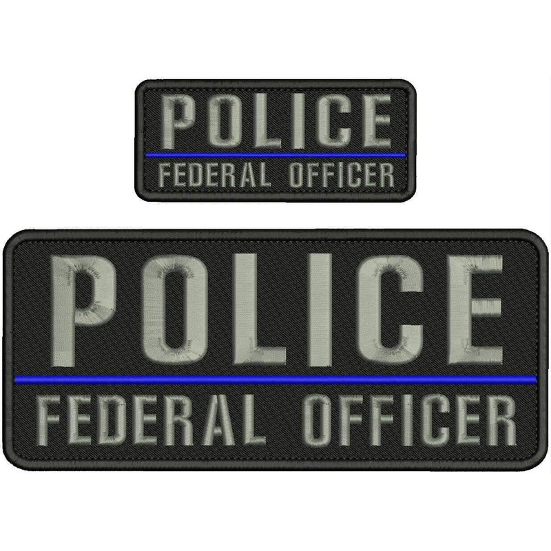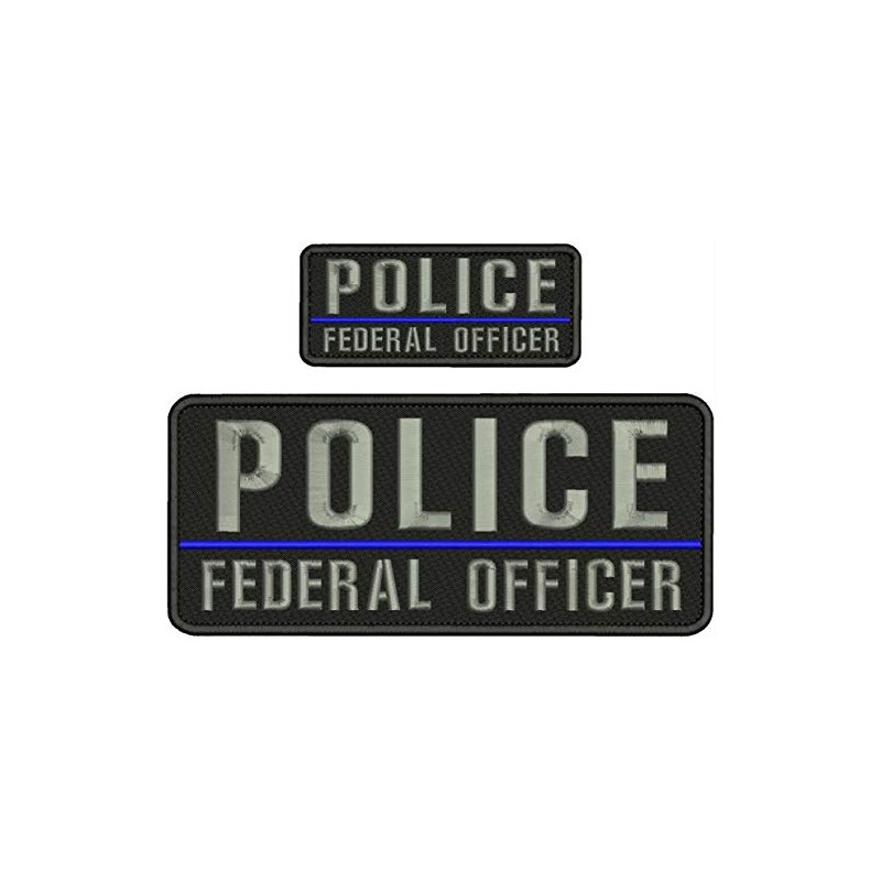 Police Federal Officer Blue LINE EMB Patch 4X10 and 2X5 Hook ON Back BLK/Gray - Embroidery Patch for Jacket Hat Backpack
