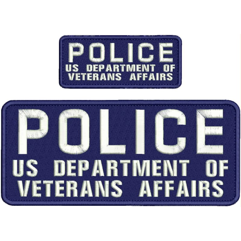 POLICE U S D O F V A emb patch10X4 AND 5X2 hook on back white on navy blue