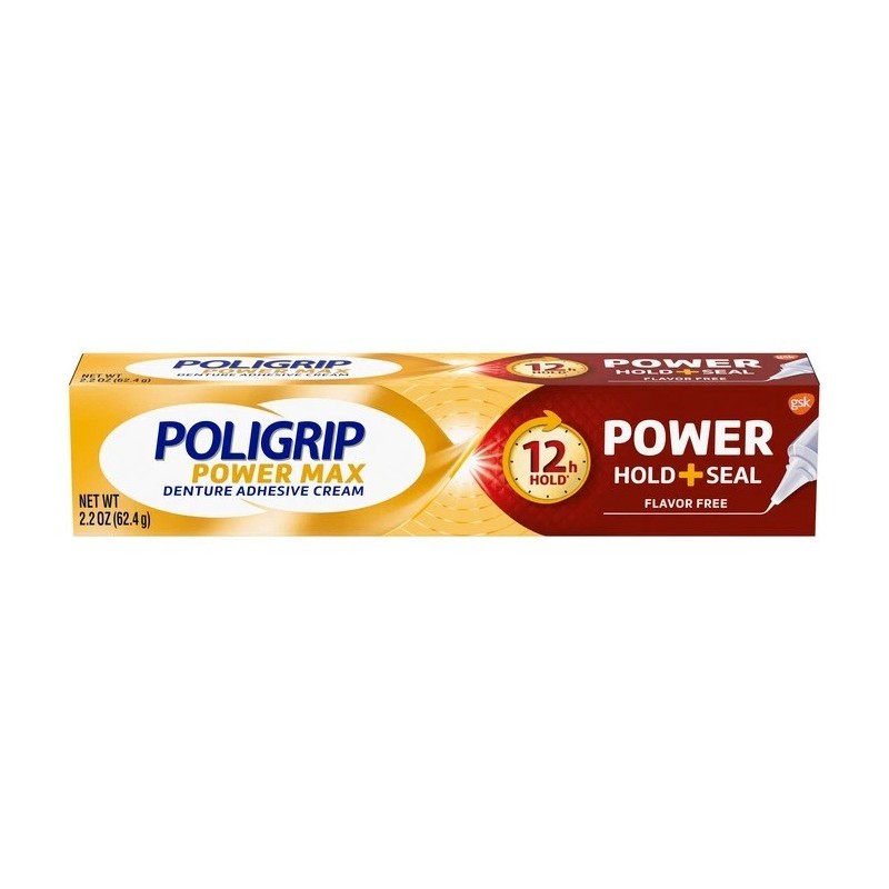 Poligrip Power Max Power Hold + Seal Denture Adhesive Cream Flavor Free 2.2 OZ