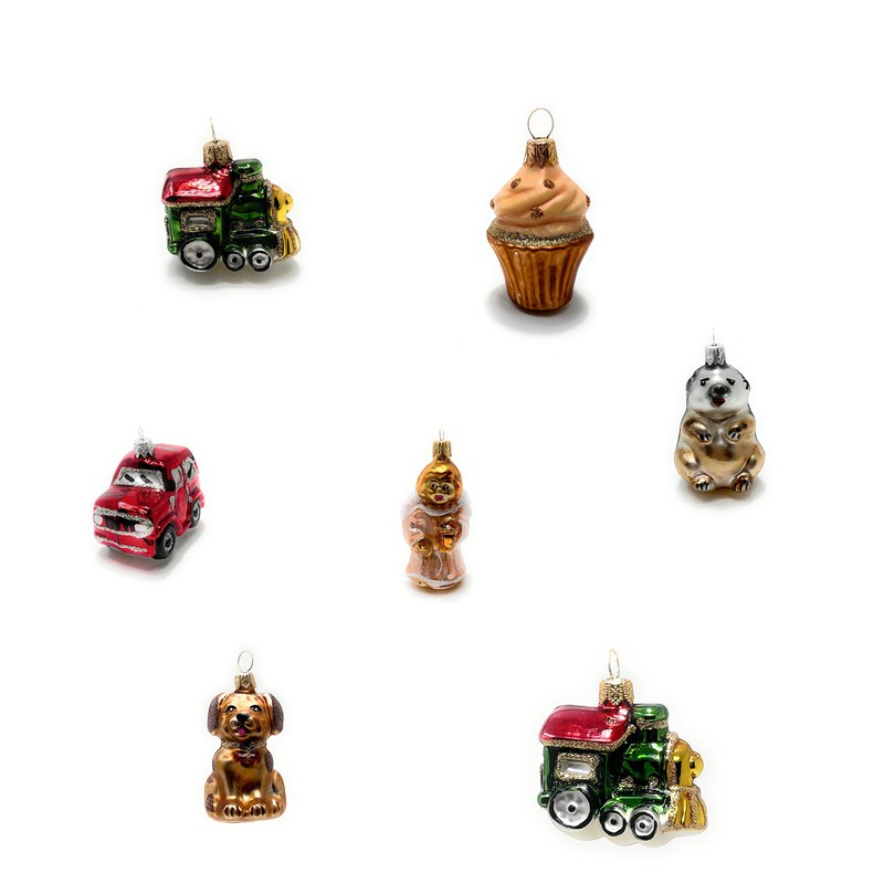 This beautifully handcrafted blown glass Christmas ornament brings winter charms to life . Lovely small figurines, featuring glitter details and multi colored embellishments.