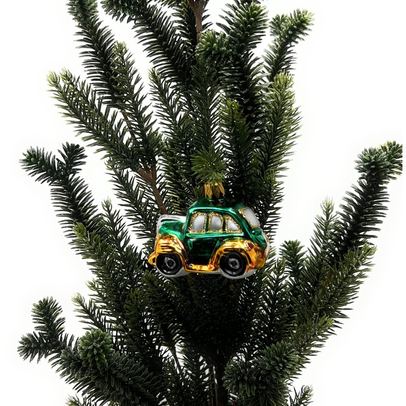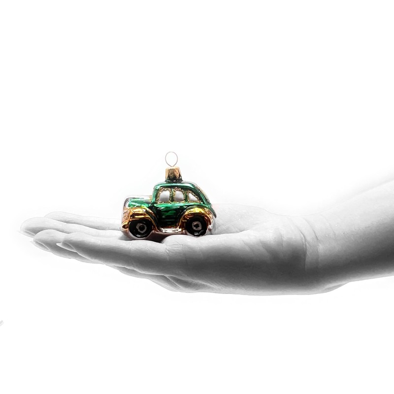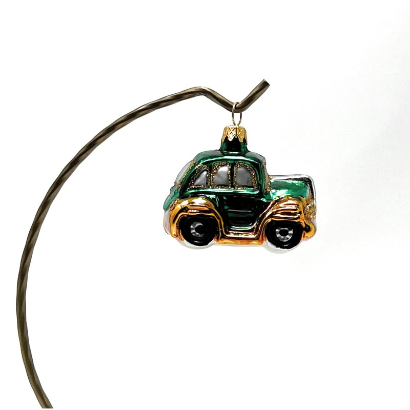 Polish Gallery Mini Christmas Ornament Blown Glass Handcrafted (Green Car)