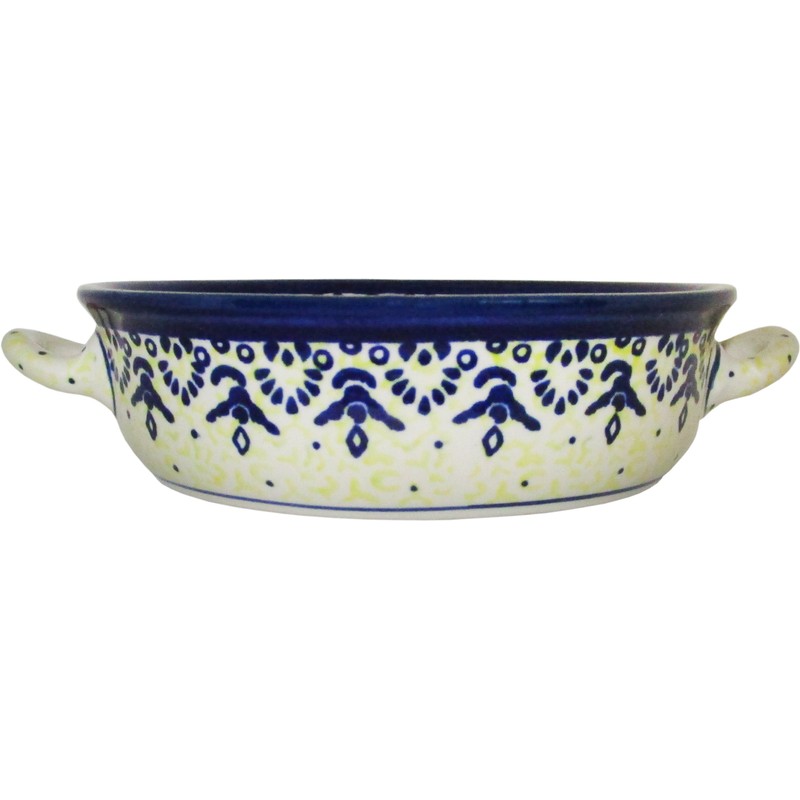 Polish Pottery Small Round Baker with Handles - Eva's Collection Lace