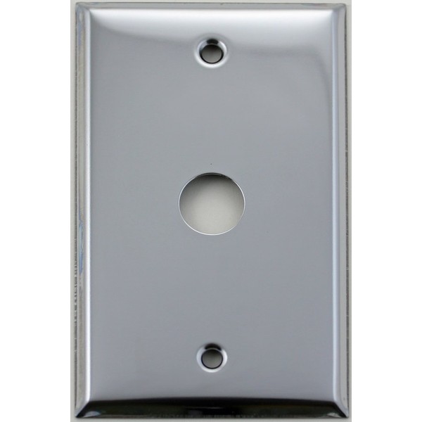 This beautiful polished chrome wall plate is chrome plated steel that is polished to a mirror like finish. This single gang wall plate will accommodate a 5/8" circle opening. Plate Measures: 2 ¾” by 4 ½”