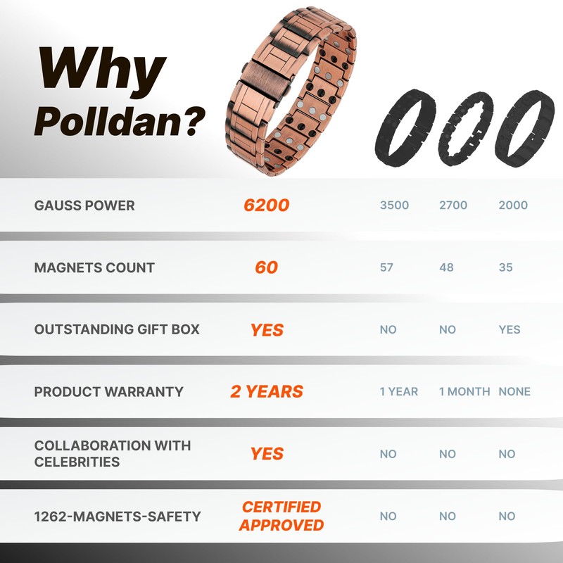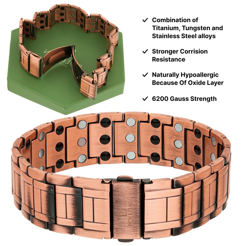- 3X POWER - It features a trio of powerful neodymium magnets per link, each generating a 6,200 gauss magnetic field — totaling an astonishing 50 magnets! Crafted from 99.95% Pure Copper, known for its beneficial properties.