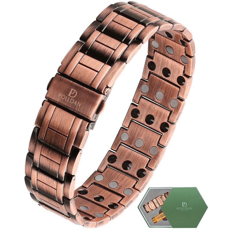 POLLDAN POLLDAN Copper Bracelet For Men with 6200 Gauss Power | Pure Copper Mens Magnetic Bracelets | Adjustable Copper Ankle Bracelet | Adorable Gift Box and Sizing Tool (3X Power Pure Copper)