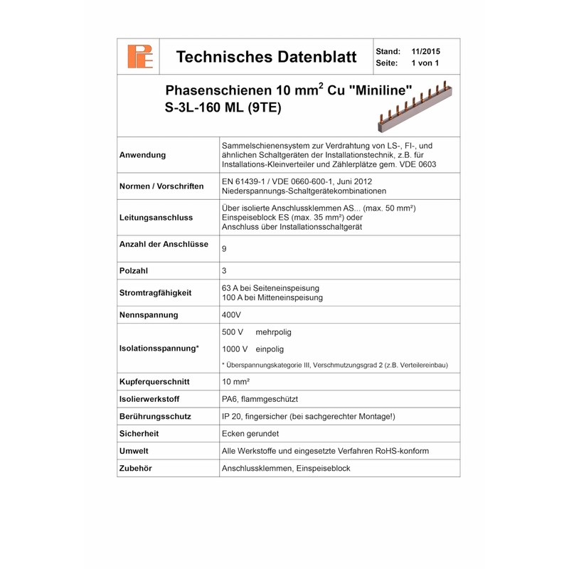 - Current capacity: 63 A at side feed | 100 A at centre feed