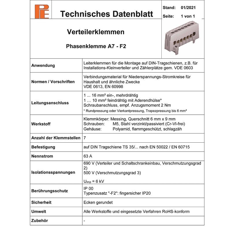 • Connection material for low voltage circuits for household and similar purposes VDE 0613, EN 60998