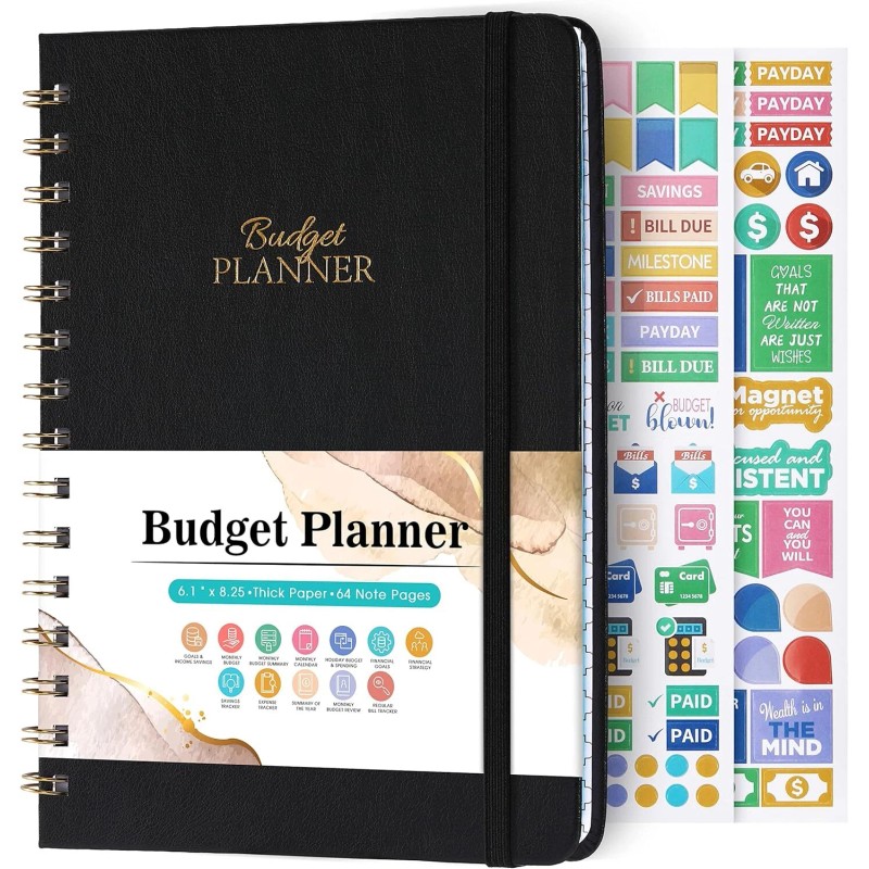 Medium Black Budget Planner 12 Month Money Management Organizer Undated