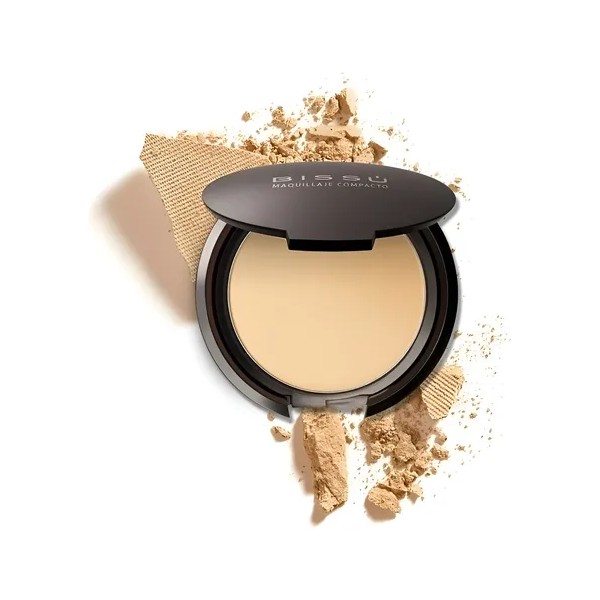 Maquillaje compacto facial con acabado semimate.