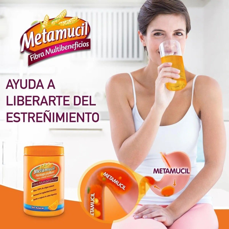 Polvo Soluble Instantáneo Metamucil Sabor Naranja 174 Gramos