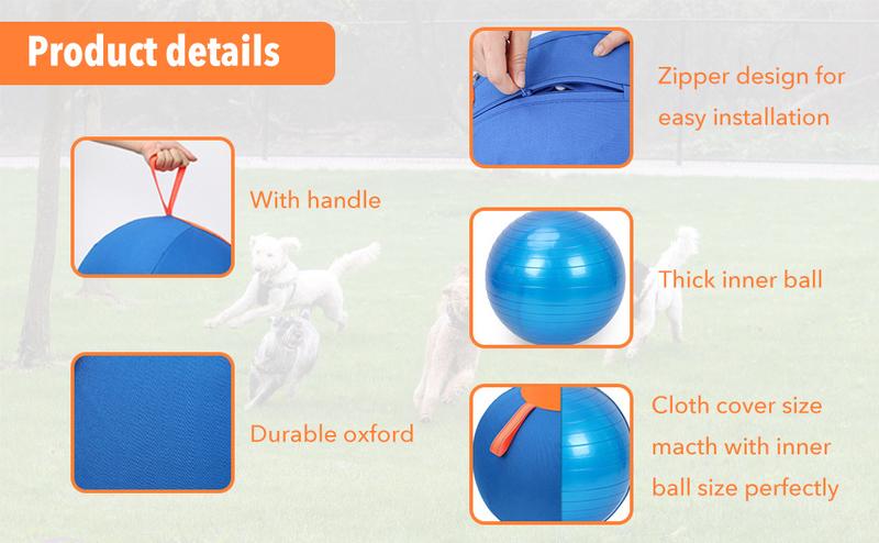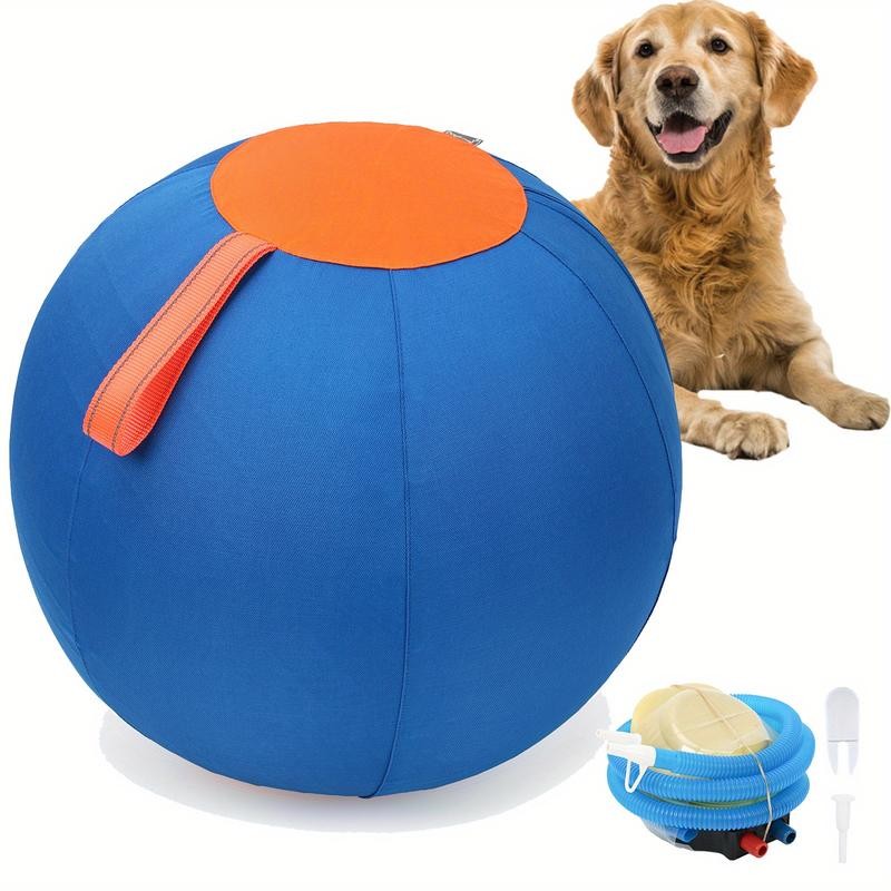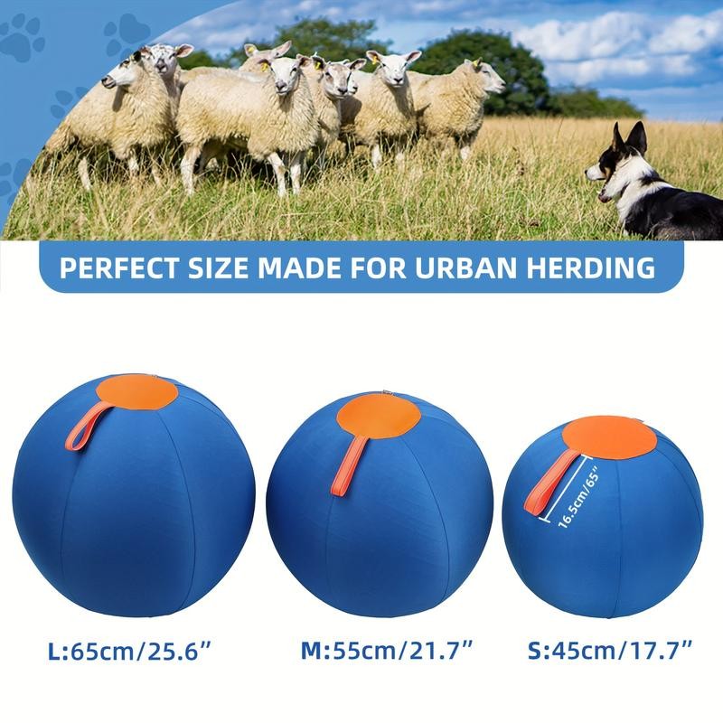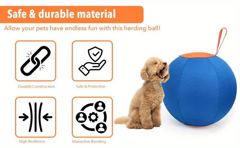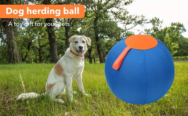 Polyester Dog Herding Ball Toy - 1pc Durable with Pump & Repair Kit, Large Breed Recommended, Solid Pattern for Interactive Play Training - Color: Blue