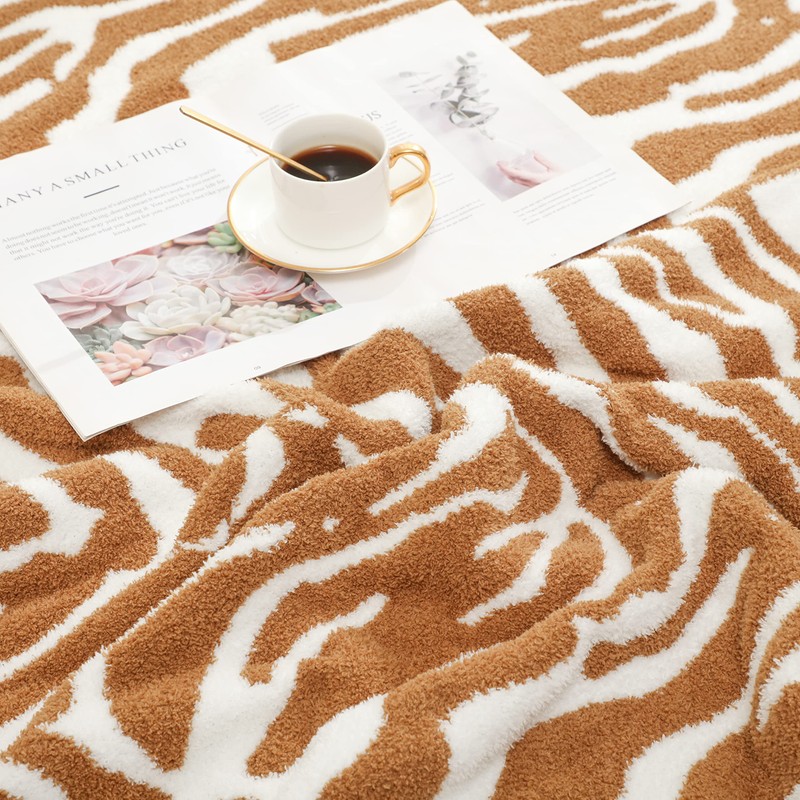 Polyester Microfiber Fluffy Animals Zebra Print Stripes Knitted Throw Blanket Super Soft Cozy Thick Throw Blanket for Sofa Couch Bed 51"X60"