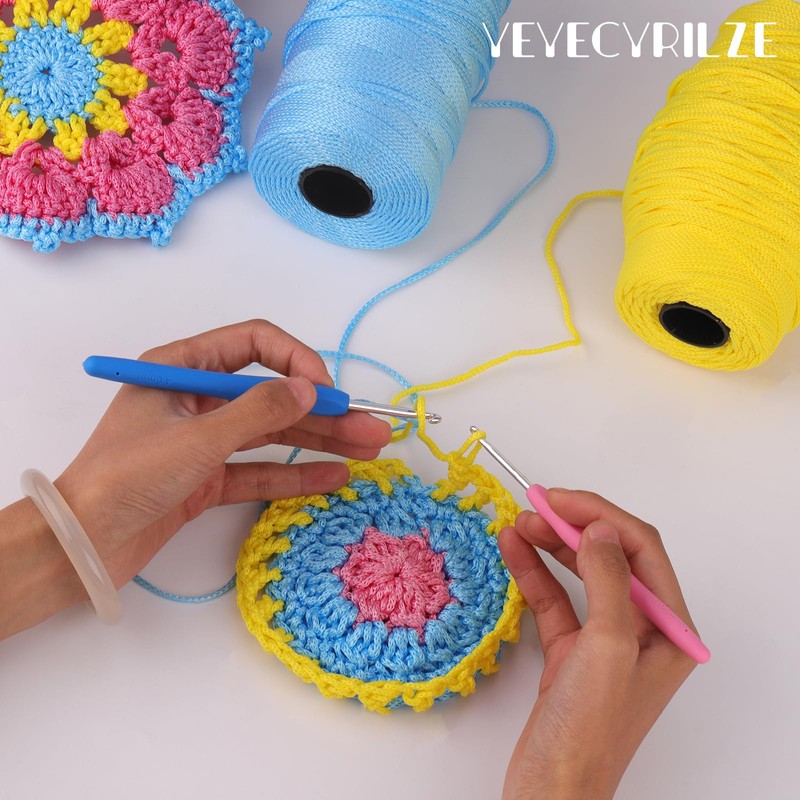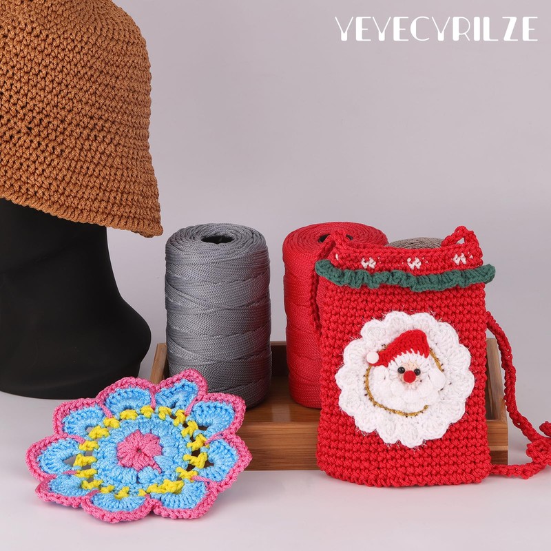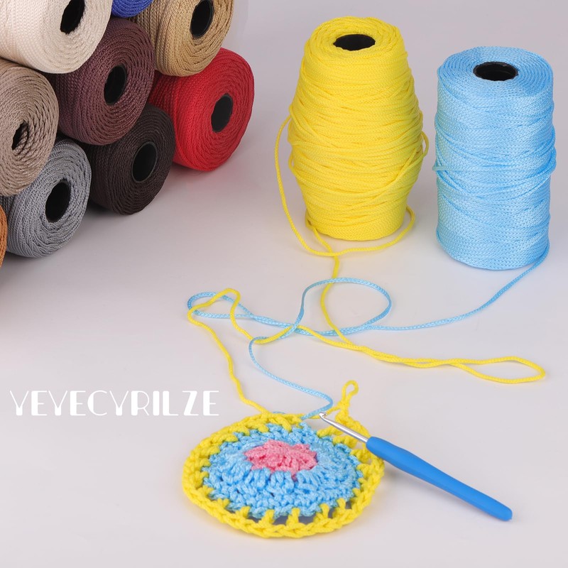 - Application: polyester yarn. Ideal for crocheting and knitting, such as bags (e.g. handbags, shoulder bags, shopping bags, beach bags), hats, shoes, carpets, flowers, tablecloths, coasters, baskets or children's toys.