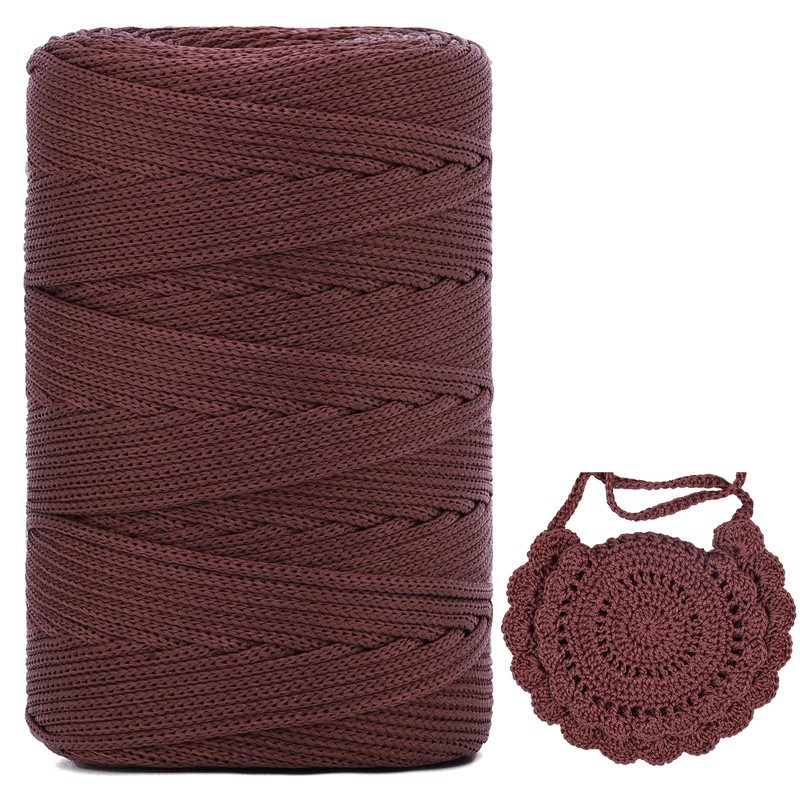 Polyester Yarn 3 mm x 225 m, Macrame Yarn 3 mm, Macrame Band, Polypropylene Yarn, Braided Macrame Cord Colourful, Yarn for Crochet for Knitting, Decoration DIY Crafts (Dark Brown, 1 Piece)