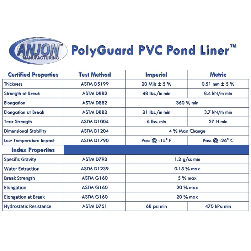 **Anjon Manufacturing PolyGuard 20-Mil PVC Pond Liner**