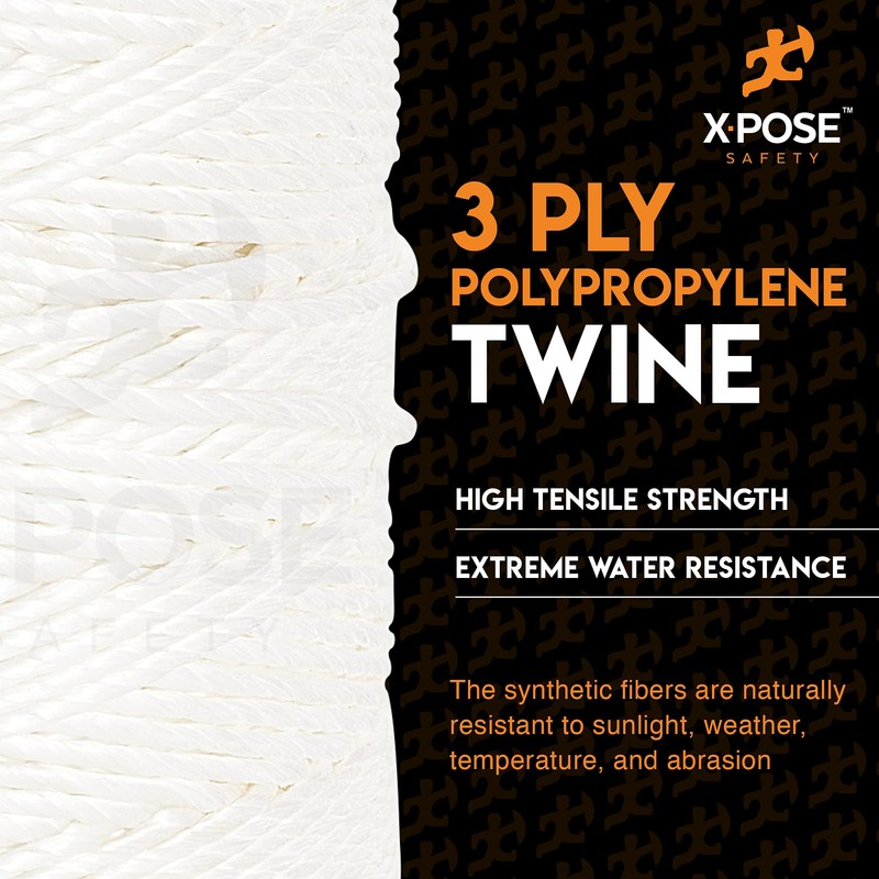 • THREE PLY POLYPROPYLENE TWINE - Our poly twine is single ply and strong enough to handle any indoor or outdoor task. It's easy to tie a knot in the twine - no need to double up and waste material. White color stands out noticeably in daylight and nighttime conditions.