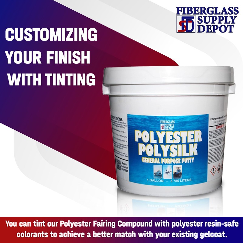 This lightweight cosmetic filler also has minimal shrinkage and less odor than traditional polyester fairing compounds. In addition, you can tint our Polyester Fairing Compound with polyester resin-safe colorants if you would like to get a better match with your existing gelcoat.