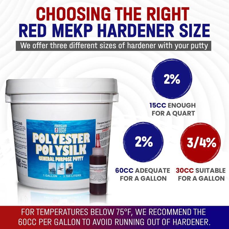 Polysilk General Purpose Polyester Fairing Putty for Fairing and Filling of Various Surfaces. Kit Includes Red 60cc MekP Hardener. (Gallon Kit)