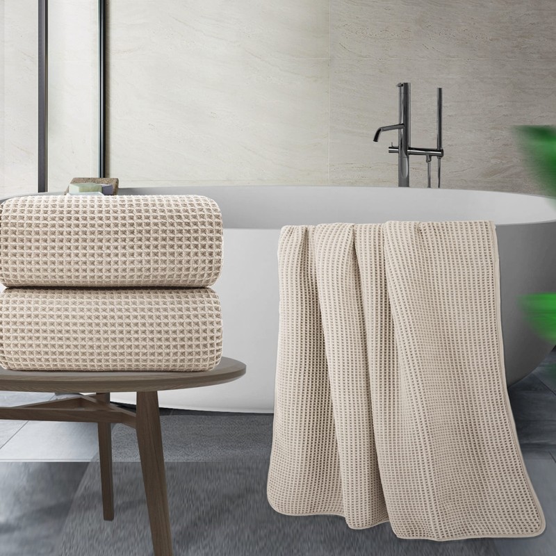- Microfiber thoroughly dries faster and gentler than traditional fibers; waffle weave feels smoother on your skin and is less likely to collect lint or debris