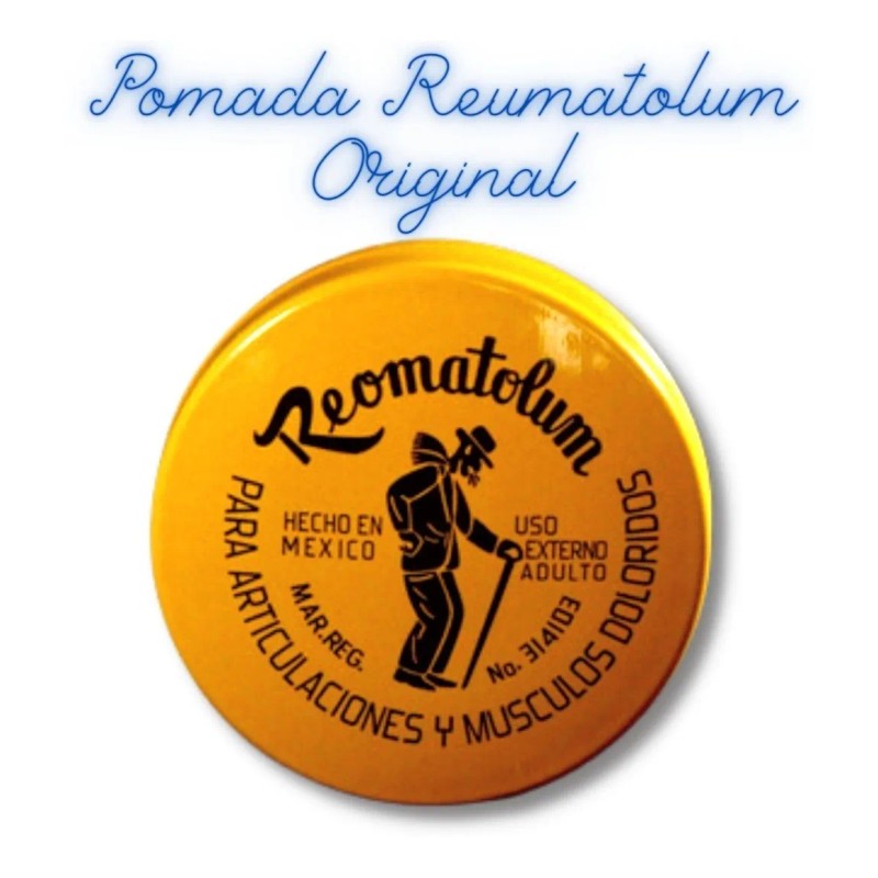 Descripción Limpia: Pomada Reumatolum para aliviar dolores de reumas, golpes internos, conocida también como pomada del viejito.