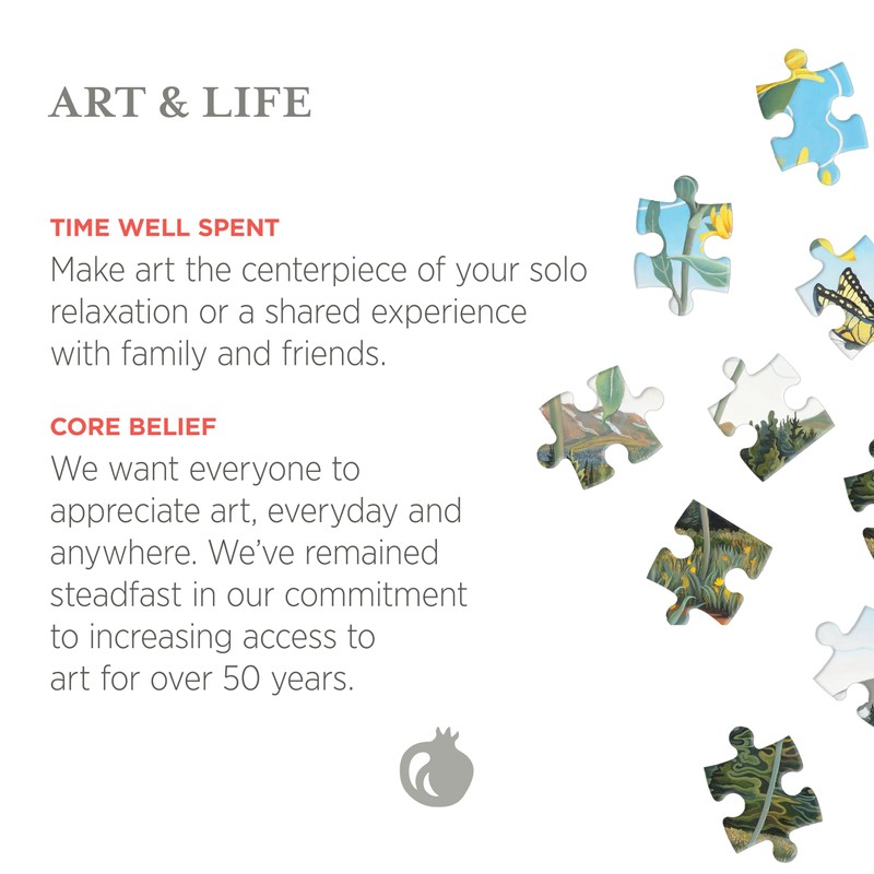 - The durable 10” x 13” x 1-7/8” storage box shows the completed puzzle artwork, the original artwork and is an ideal place to keep pieces safe, together, and free from damage.