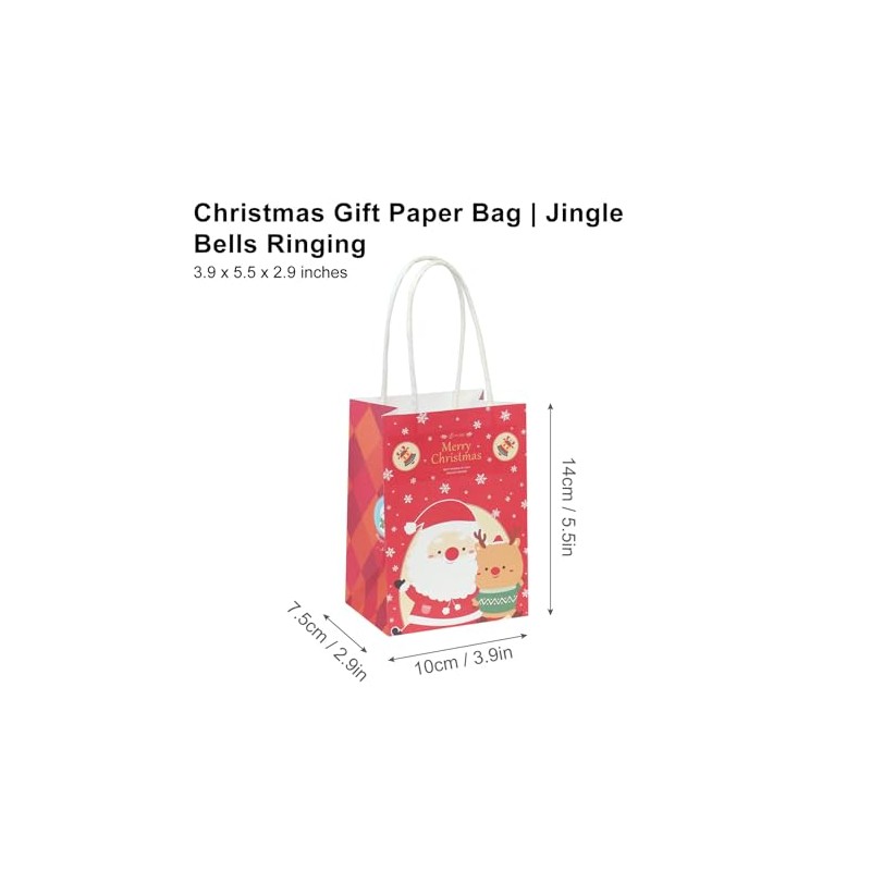 Pomei 20 PCS Christmas Gift Paper Bags- Jingle Bells Ringing, Printed White Kraft paper with Paper Handles, 3.9"x5.5"x2.9", Paper Bags for Gifting, Christmas Parties, Retail, and Shopping.