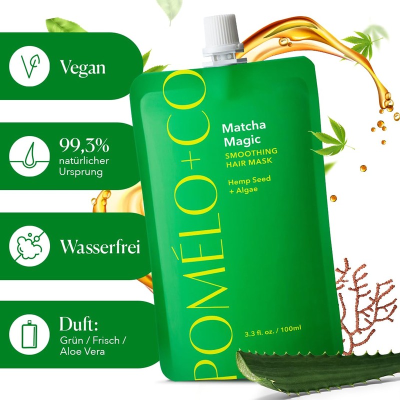 Pomélo+Co Nourishing and Volumising Pre-Shower Hair Mask with Amino Acids, Algae and Hemp Seeds/Hair Care for Fine Hair/Matcha Magic 100 ml