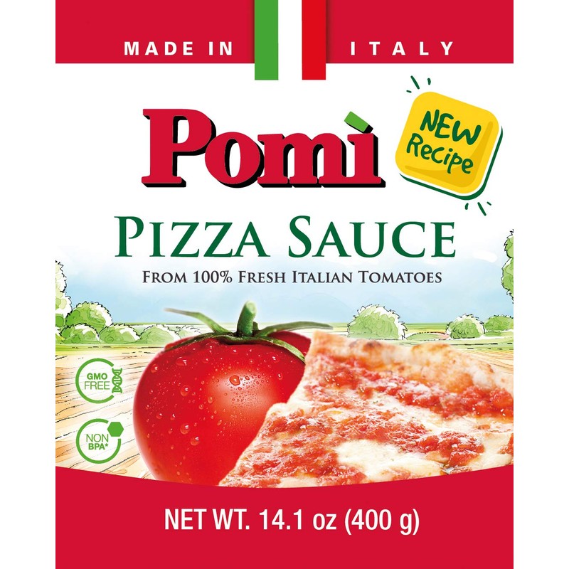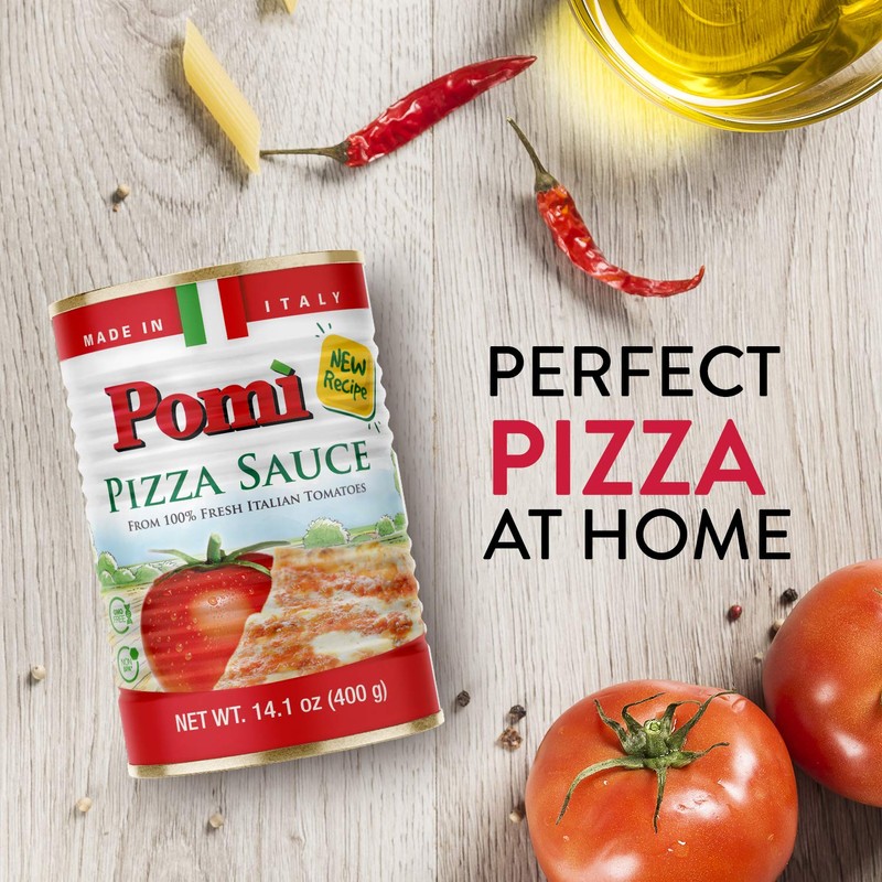- Pomi Pizza Sauce is made with 100% Italian tomatoes and select spices. Ready to use, our NEW recipe is the best choice to make your own home-made pizza easily.