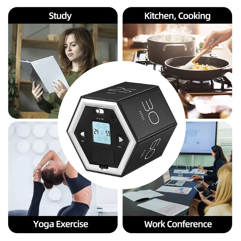 - Hexagonal Cube Shape: The timer has 6 pre-designed hours, unique cube design, novel and interesting, and can be placed on the desktop smoothly and not easy to tip over, so you will love time management.