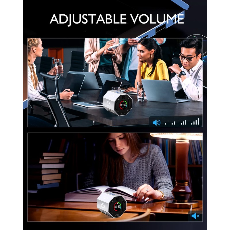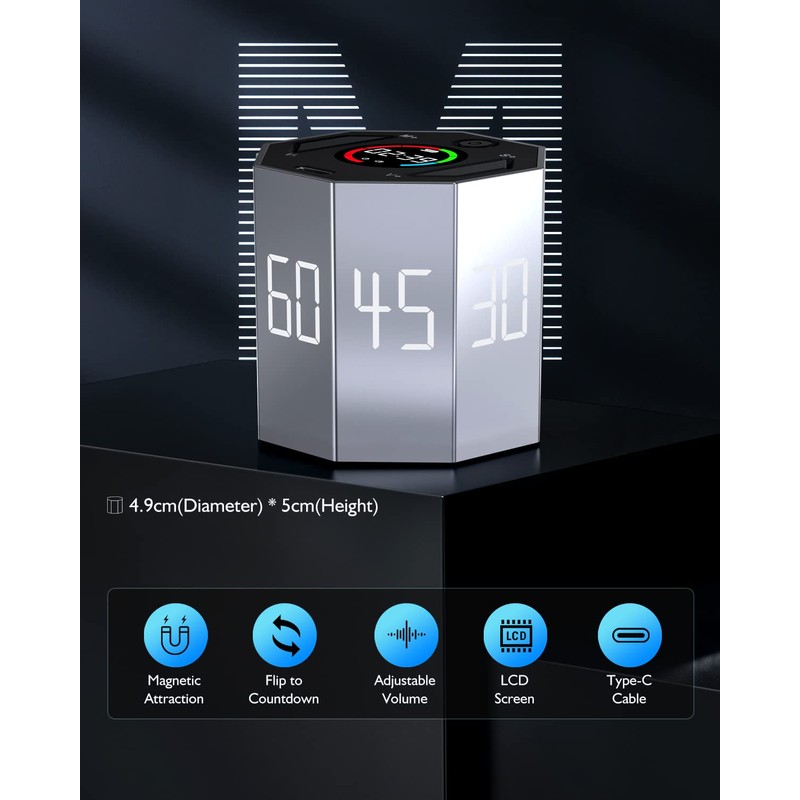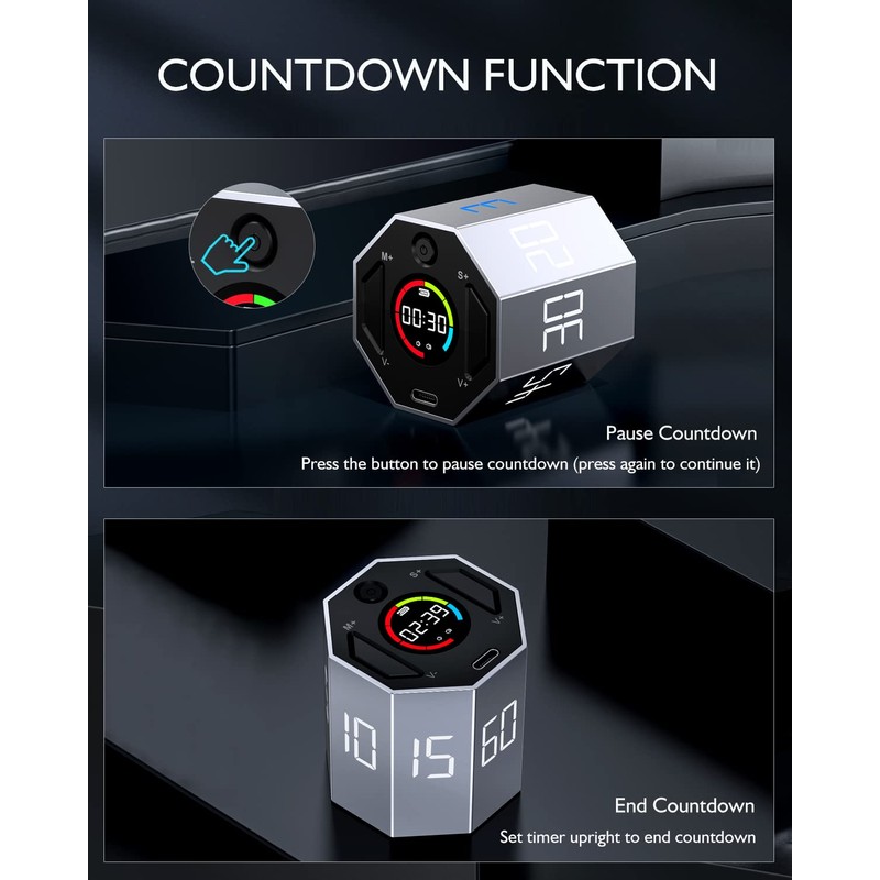 • OCTAGONAL GRAVITY TIMER - FLIP TO SET TIME: [upgrade] Pomodoro timer 2.0 has 8 preset countdowns (3/5/10/15/20/30/45/60 minutes), Just flip up any side of the Pomodoro timer to set your countdown, you can set it with one hand when you are busy. Also supports custom countdown(the maximum time is 99:59) which widely suits your daily study, fitness yoga, work meetings, kitchen cooking, etc.