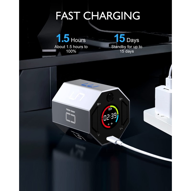 • ENHANCED MAGNETIC & TYPE-C FAST CHARGING: [upgrade] Pomodoro timer 2.0 has enhanced the magnetic attraction on the back, makes the timer firmly adsorb to the metal surface, and is no longer bound by the desk. Equipped with Type-C fast charging technology, it not only saves your time but also saves your money for buying AAA batteries.