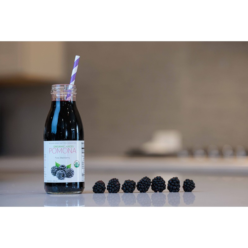 Pomona Organic Blackberry Juice (Pack Of 12), Cold Pressed USDA Organic Juices, 100% Blackberries, No Added Sugar, Not From Concentrate, Vegan, Kosher, Non GMO, Pasteurized, 8.4 Oz Glass Bottles